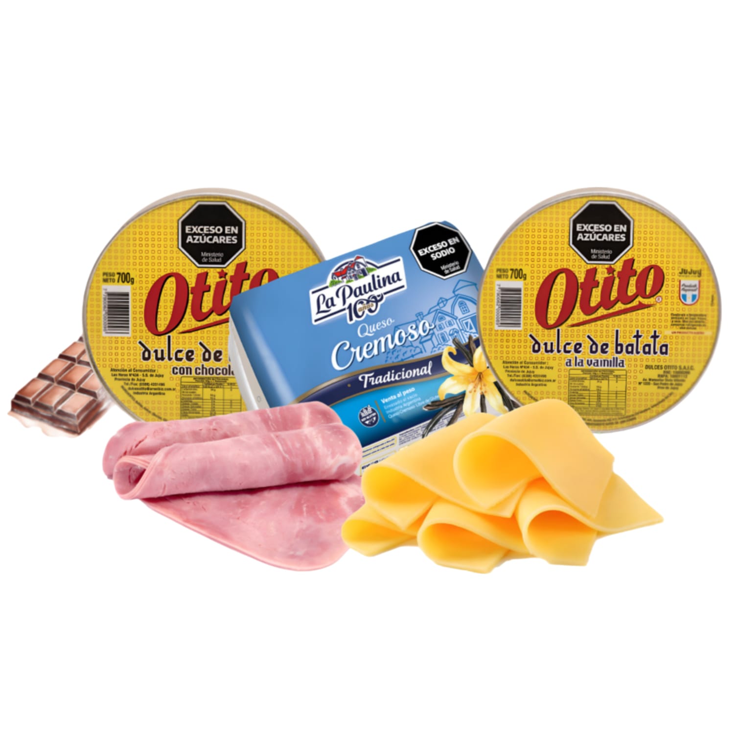 200GRS TYBO SANDWICH + 200GRS JAMON COCIDO + 500GRS QUESO CREMOSO + 500 GRS DCE BATATA (VAINI - CHOC