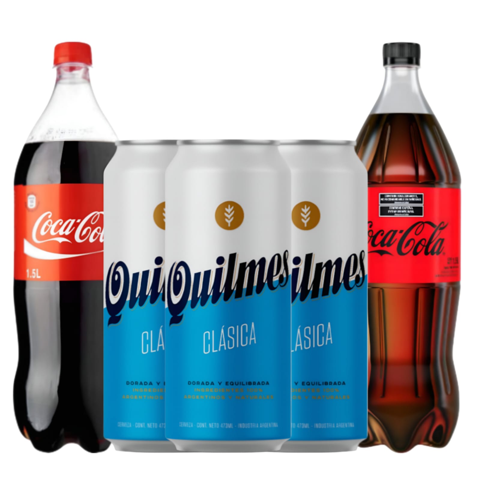 3 LATAS QUILMES X 473CC + 2 COCA COLA X 1.5L